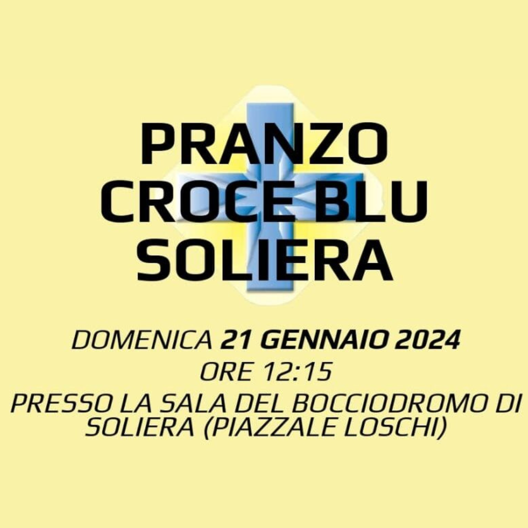 Siete tutti invitati al “PRANZO SOCIALE DELLA CROCE BLU DI SOLIERA” presso la SALA DEL BOCCIODROMO DI SOLIERA (PIAZZALE LOSCHI).